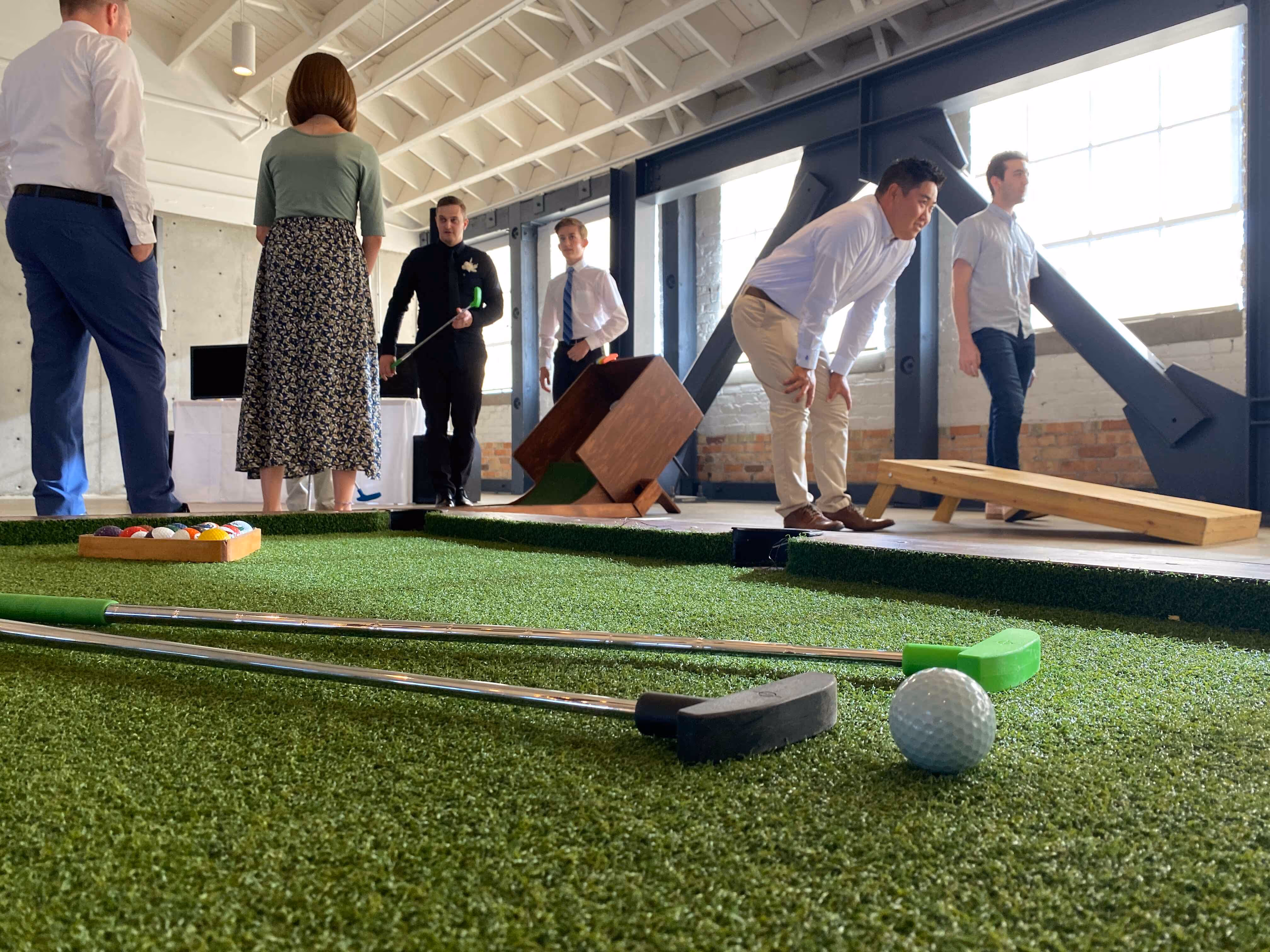 Bring coworkers together with a mobile mini golf course that makes team building and networking fun and effortless.